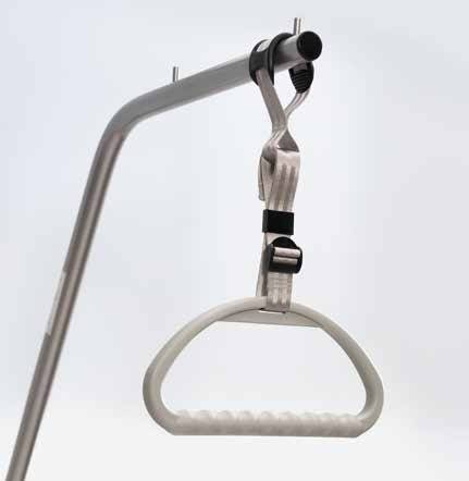 - Ergonomische Formgebung: Das leicht nach vorn gebogene Rohr verhindert ein Anstoßen an der Zimmerwand, selbst wenn das Bett in Trendelenburg-Position gebracht wird.